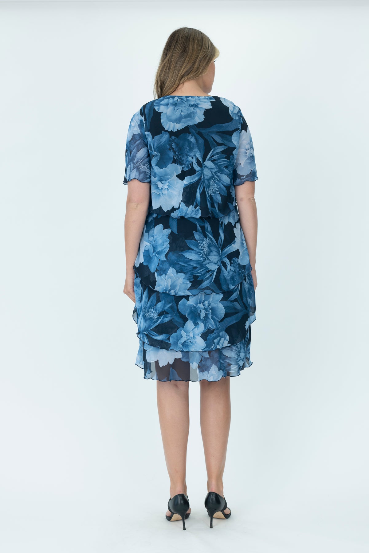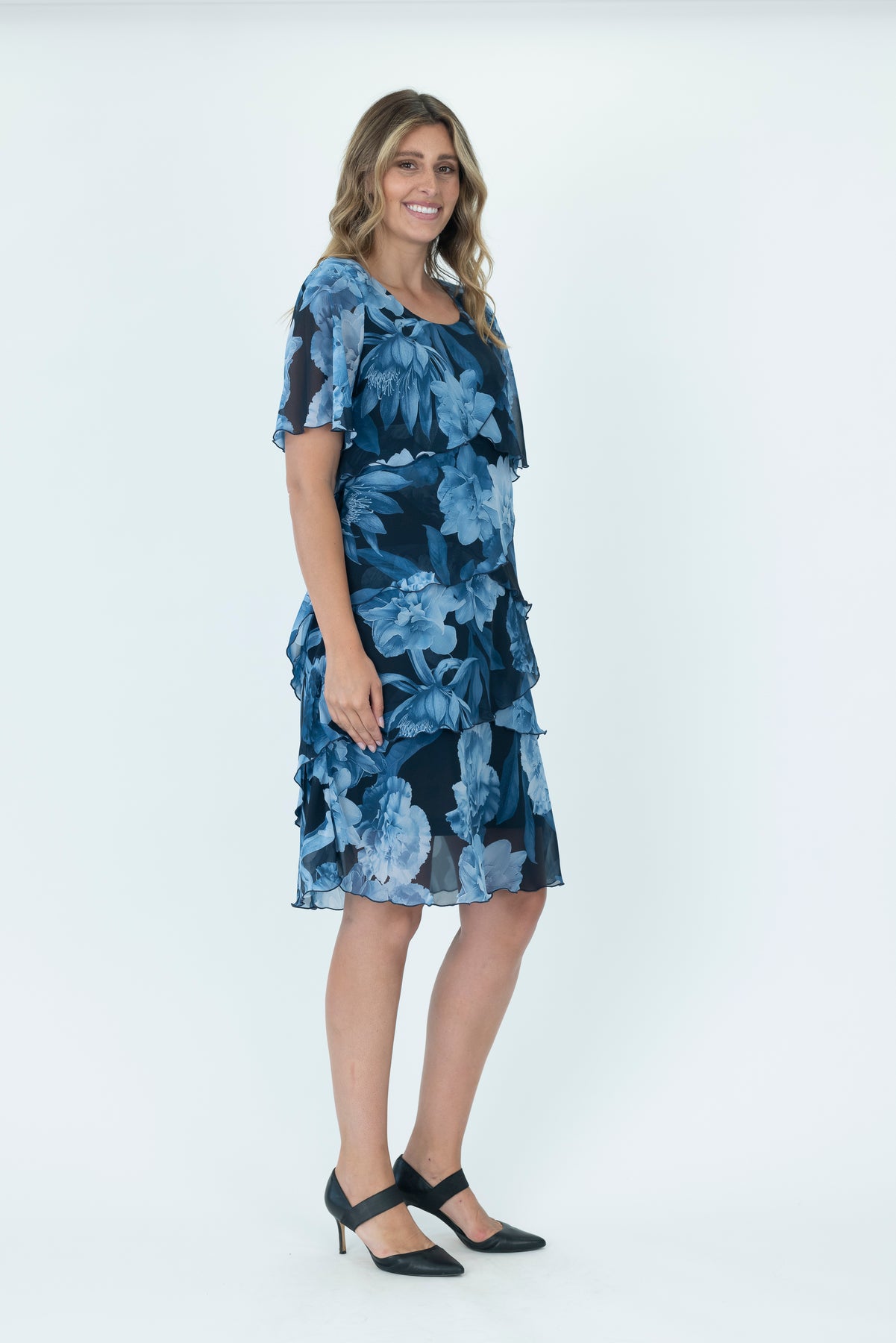 Vivid Layered Chiffon dress in Navy and Light Blue Floral V2735A.2
