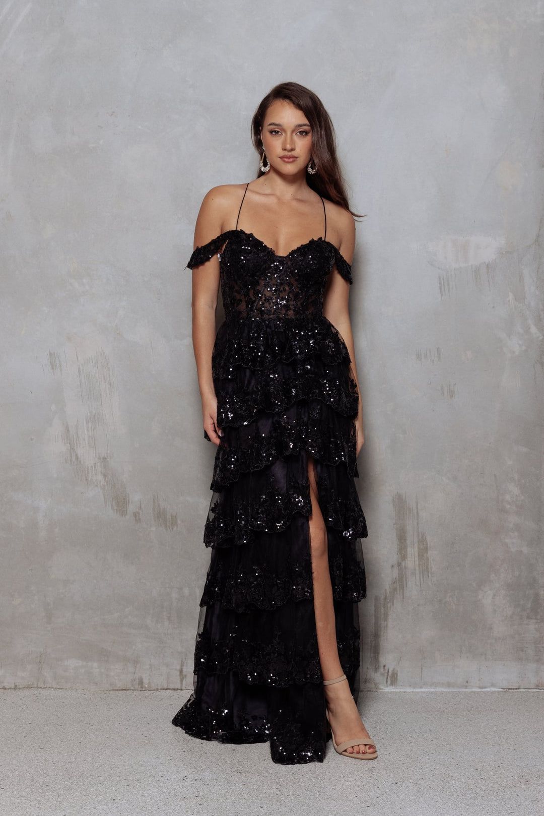 Model pictured in Jadore gowns is a size 6-8 and is approx. 180cm tall