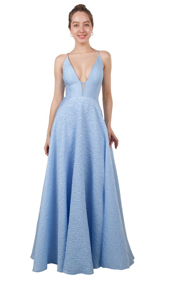 Anissa Textured Fabric Ballgown in Dove Blue 220517