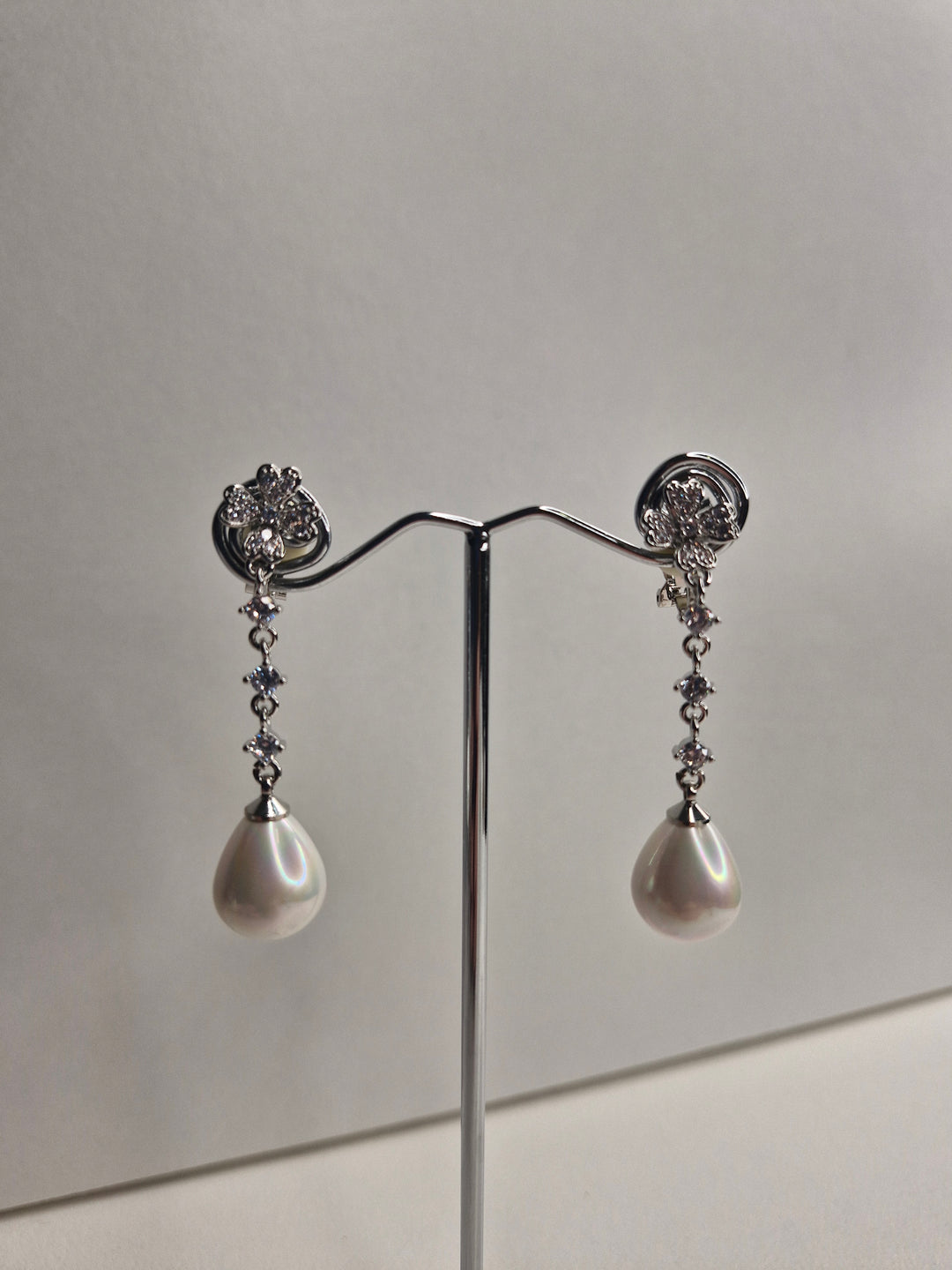 De Cavalier Silver and Pearl drop clip on earrings 457