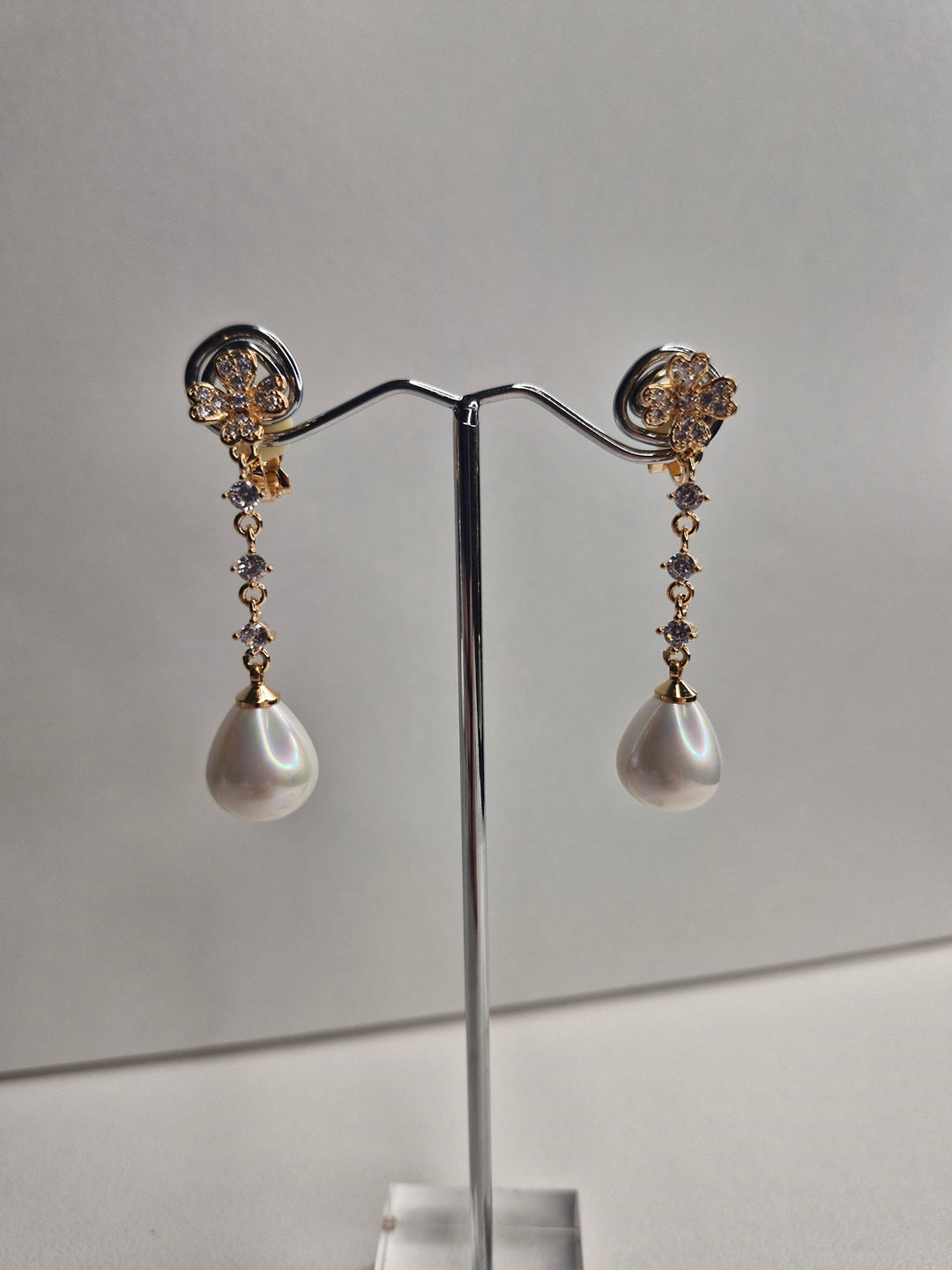 De Cavalier Gold and Pearl drop clip on earrings 455
