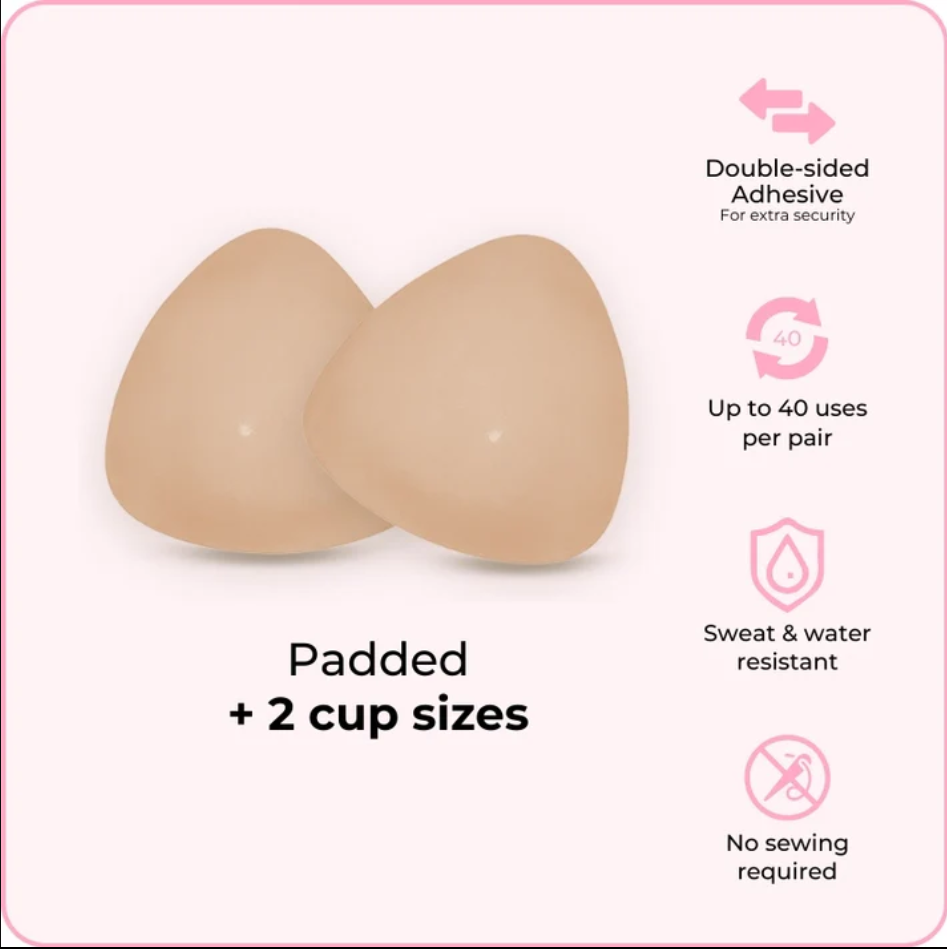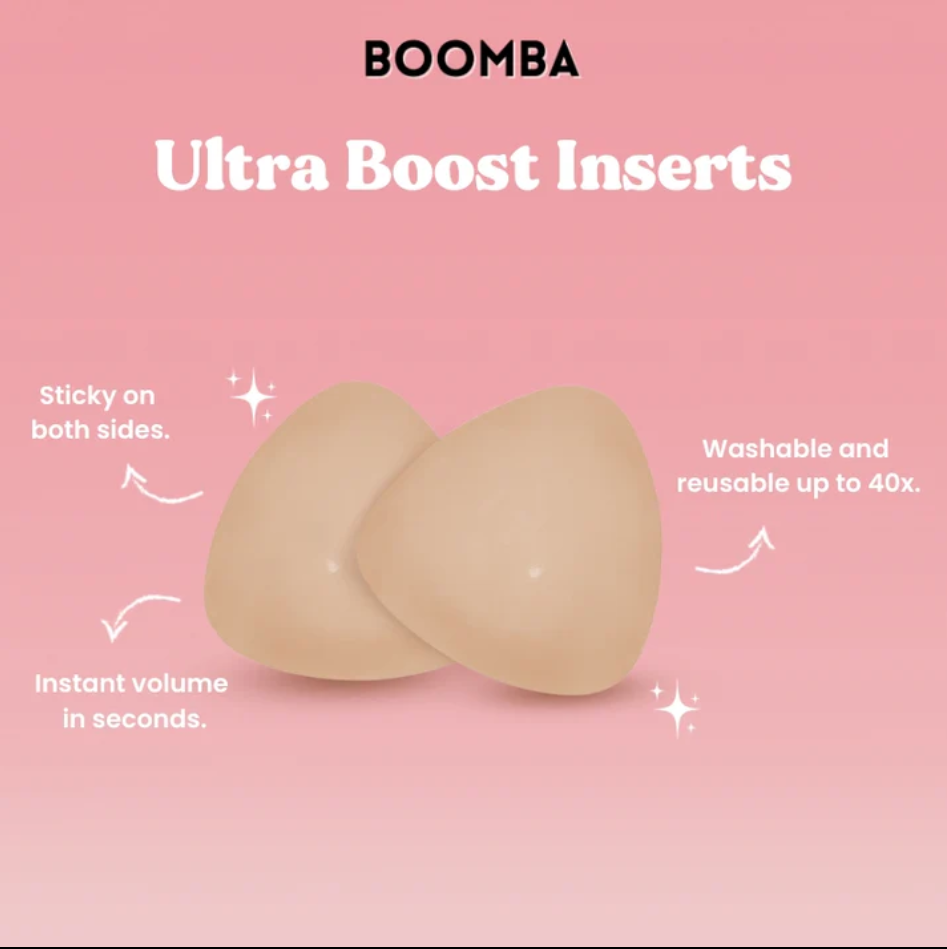 Unlike a sticky bra that is supported by the adhesive, BOOMBA inserts are supported by the clothing and cannot stay up by themselves. It is crucial to wear them in tight, structured, and fitted tops.