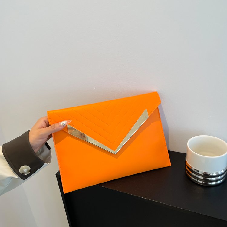 R7 Flat Envelope Metal Edged Clutch in Orange 205