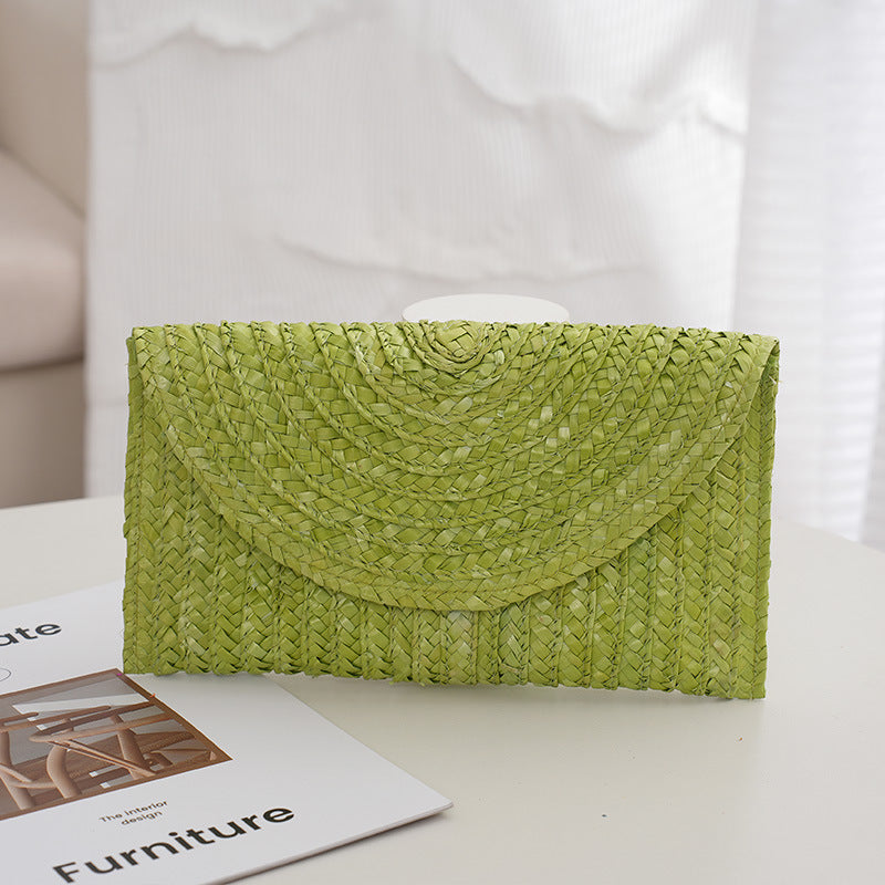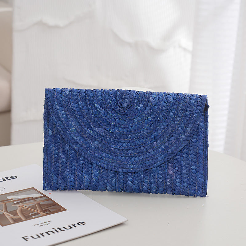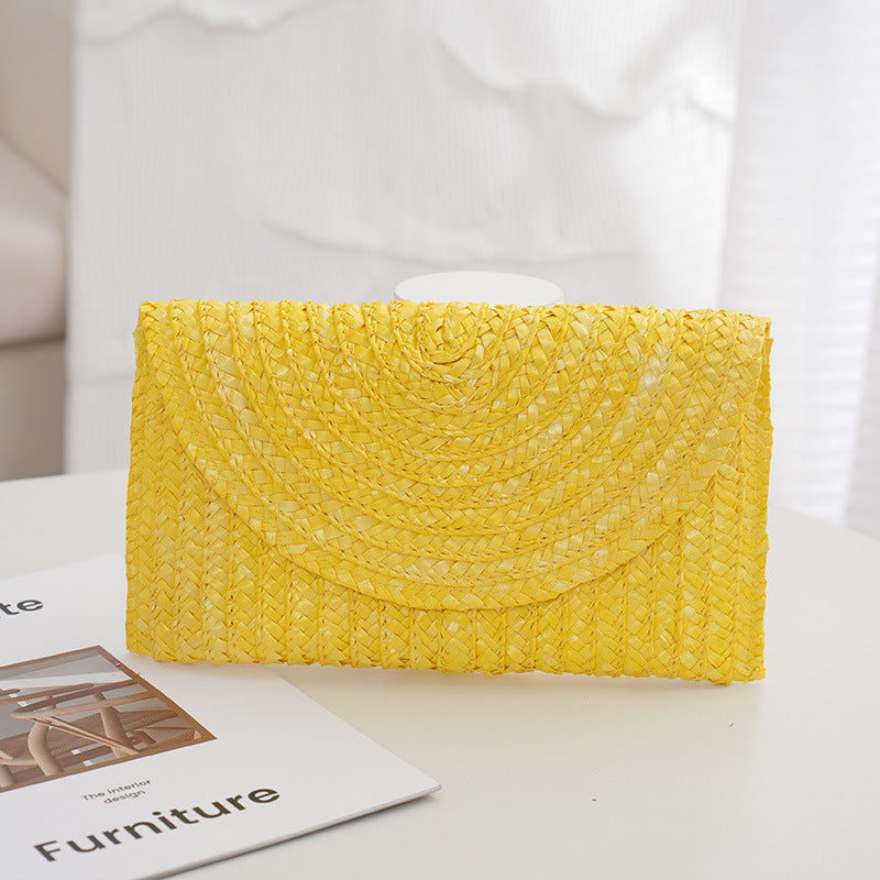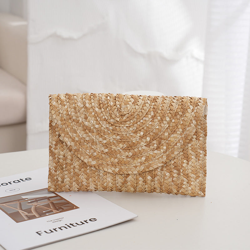 R7 Large Rattan Curved front clutch with Pompom in Natural 202