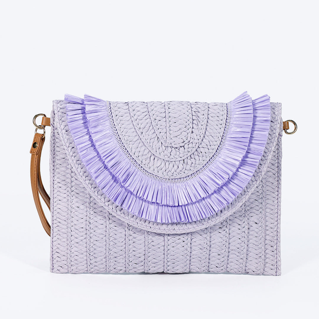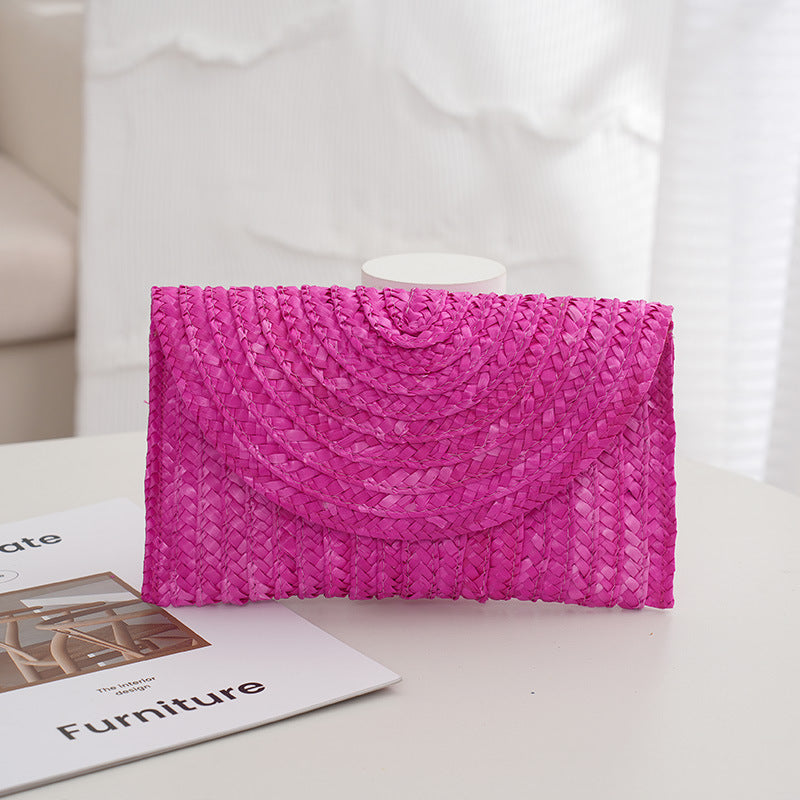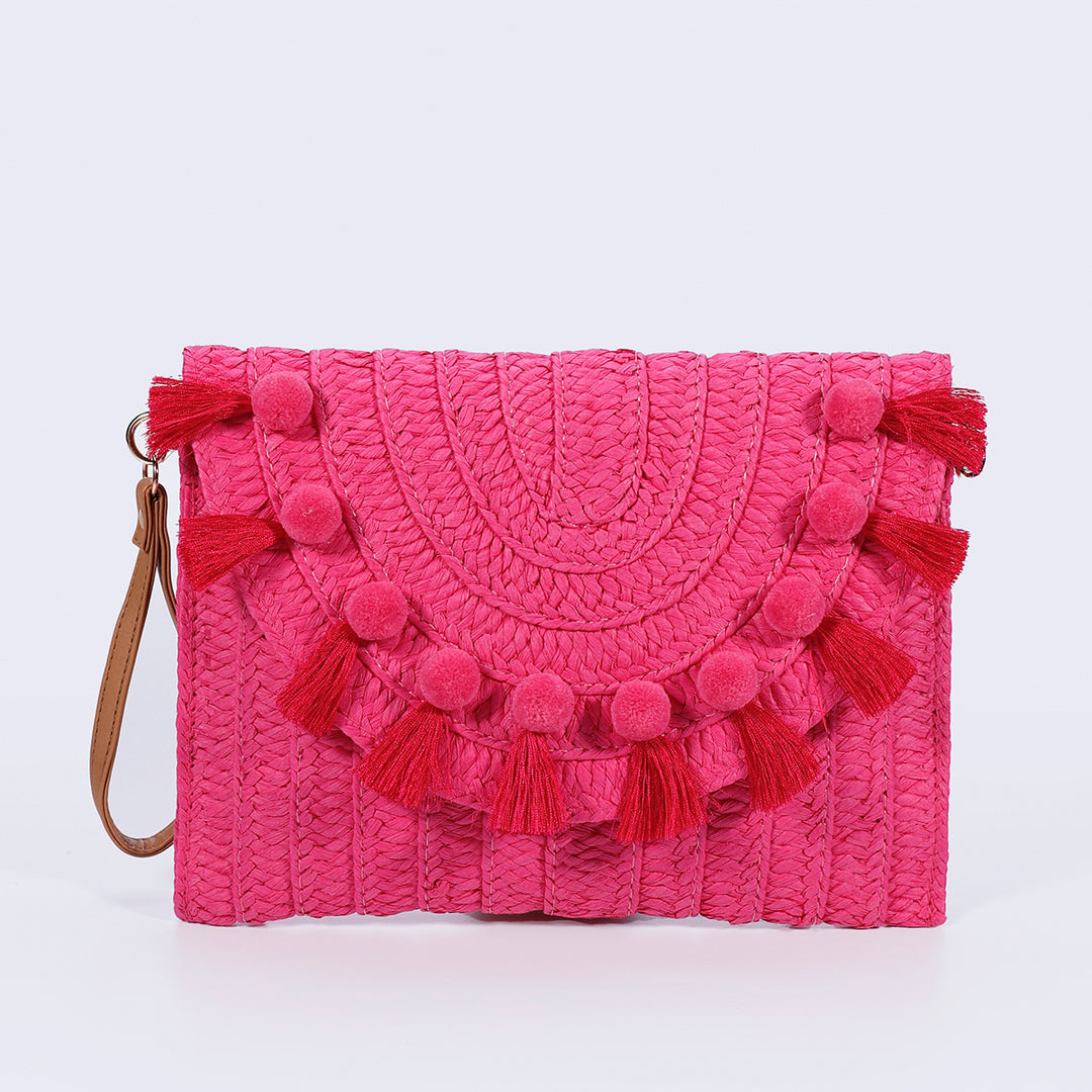 R7 Rattan Fringed front clutch in Hot Pink 198