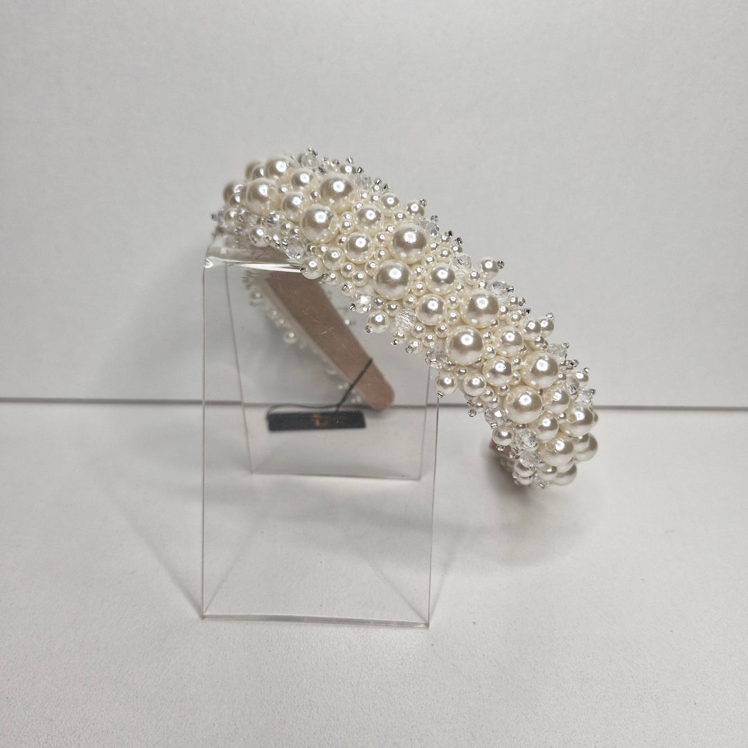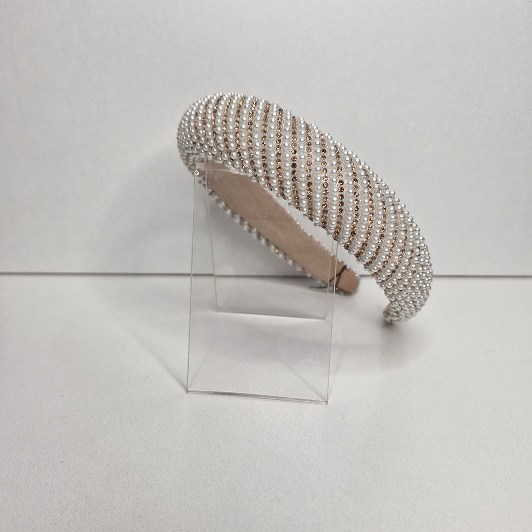Stellar Rose Headband Pearl and Gold Rhinestone 77601